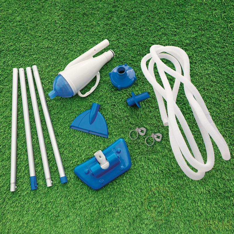 В комплектацию входит прочная телескопическая штанга, гибкий гофрированный шланг длиной 7.3 метра и специальная щетка-вакуумная головка. Штанга регулируется по длине, что обеспечивает комфортную работу. Для подключения к системе фильтрации используется универсальный переходник. Набор совместим с большинством моделей насосов-фильтров Bestway и других брендов, обеспечивая мощный всасывающий поток для тщательной уборки без необходимости слива воды.