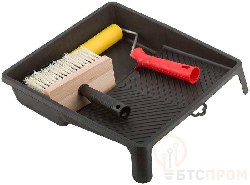 Набор для наклеивания обоев FIT РОС включает в себя макловицу для нанесения клея, прижимной резиновый валик и пластиковую ванночку. Резиновый прижимной валик цилиндрической формы подходят для работы с любыми обоями. Инструмент деликатно удаляет излишки клея и пузырьки воздуха из-под полотна. Ванночка изготовлена из качественного прочного пластика, легко очищается от старой краски и клея. Рельефная структура поверхности скатывания обеспечивает оптимальный ЛКМ валиком и предотвращает разбрызгивание. Макловица удерживает большое количество лакокрасочного материала за счет длинной искусственной щетины.