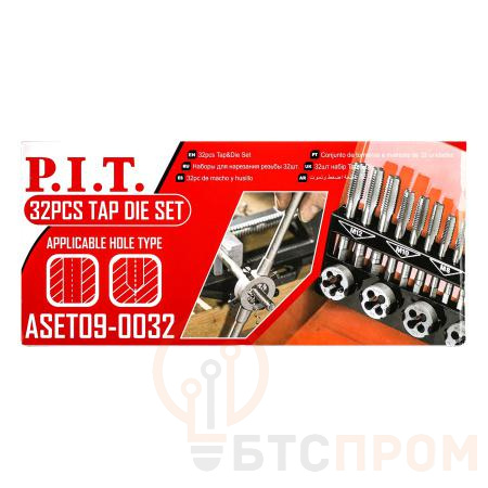 Набор для нарезания резьбы ASET09-0032 от бренда P.I.T. — это профессиональный комплект из 32 предметов, предназначенный для создания и восстановления внутренней и наружной резьбы. В набор входят метчики и плашки наиболее востребованных метрических размеров (от М3 до М12), а также универсальные держатели (воротки) для удобной работы.