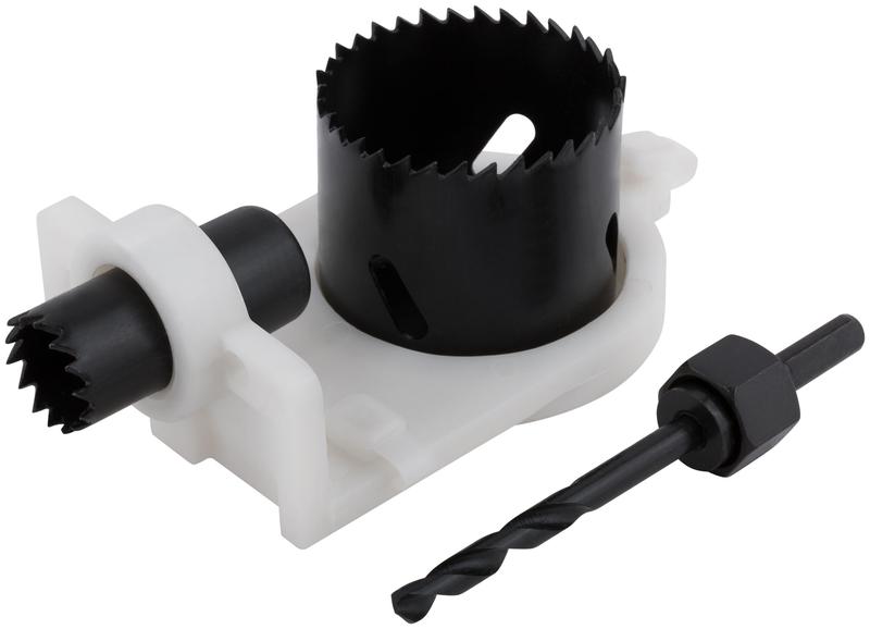 Набор для врезки замков FIT IT предназначен для работ по дереву, фанере, ДСП. В наборе представлены все необходимые инструменты для быстрой установки замка (две коронки, направляющее сверло, пластиковый шаблон. Центрирующее сверло обеспечивает точное позиционирование коронки, исключая ее смещение во время работы. Разводка зубьев на коронке обеспечивает высокую скорость пропила. Пластиковый шаблон позволяет произвести точную разметку отверстий.