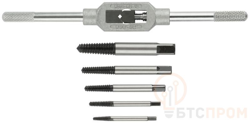 Набор экстракторов для шурупов FIT IT предназначен для выкручивания шурупов и болтов с поврежденным шлицем. Экстракторы выполнены из легированной инструментальной стали, что обеспечивает их прочность и долговечность. Корпус воротка выполнен из цинкового сплава, ручки и зажим — из инструментальной стали. 5 экстракторов разных размеров в комплекте обеспечивают широкий спектр применения.