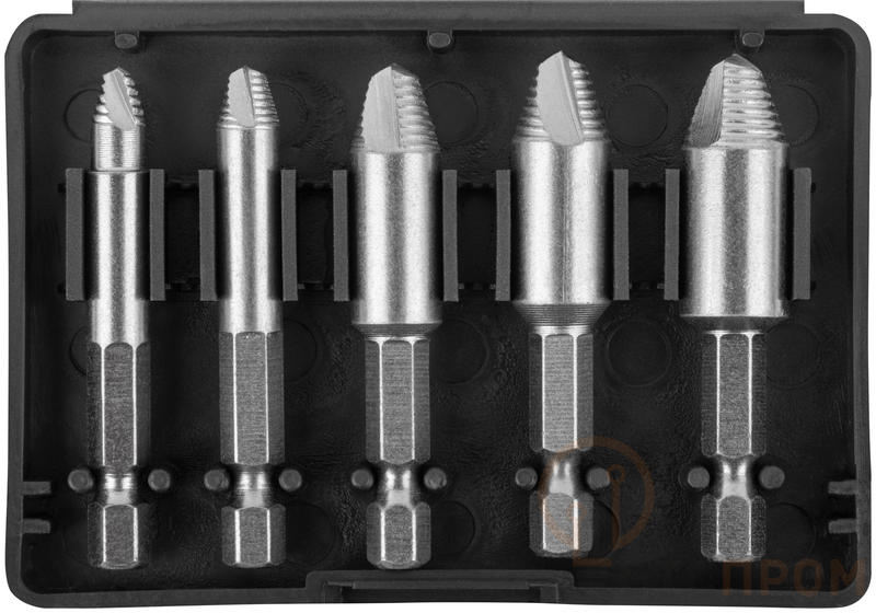 Комплект экстракторов КУРС применяется для демонтажа поврежденных шпилек и болтов с правой резьбой (с классом прочности не более 8.8). Экстракторы выполнены из быстрорежущей стали, что обеспечивает их прочность и долговечность. Экстракторы имеют шестигранный хвостовик и не проскальзывают в патроне во время работы. В комплекте представлены экстракторы универсальных размеров.
