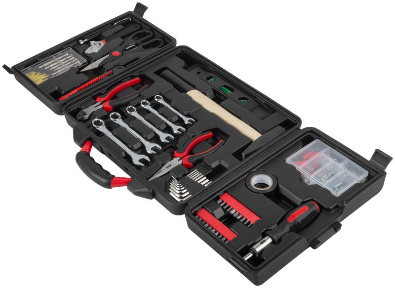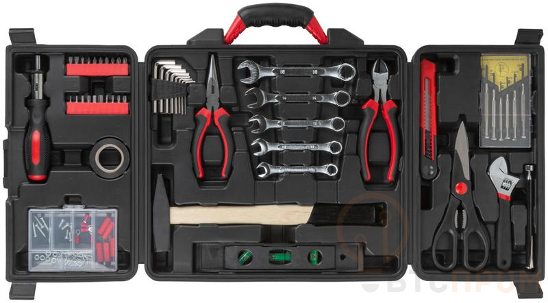 Универсальный большой набор инструментов FIT IT (140 предметов) предназначен для проведения различных ремонтно-монтажных работ. В наборе представлены все необходимые инструменты для бытового применения: тонконосы; бокорезы; ключ разводной; ножницы технические; нож технический; уровень; отвертки для точных работ; ключи hex; ключи комбинированные; биты; отвертка реверсивная; изолента PVC; молоток; набор крепежа (гвозди, саморезы, клеммы, кнопки); магнит телескопический. Инструменты выполнены из качественной стали, отличаются прочностью и износостойкостью. Благодаря пластиковому чемодану набор не занимает много места, его удобно хранить и брать с собой.