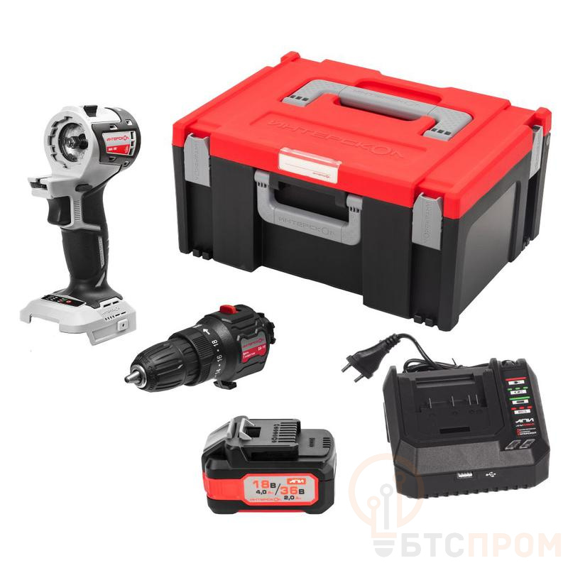 Набор инструментов МультиМАКС "Базовый Шуруповерт": привод ММ-18В модуль ДАУ-10 1 АКБ 4.0А.ч/18В (2.0А.ч/36В) ЗУ-4.0/18 МультиБОКС 150 ИНТЕРСКОЛ 755.4.5.40