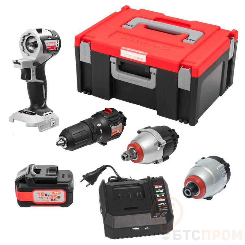 Набор инструментов МультиМАКС "Расширенный Авто" МультиМАКС18: привод ММ-18В модуль ДА-13 модуль ГАУ-300 модуль ШАУ-180 1 АКБ АПИ 18В/36В 4.0А.ч на 18В и 2.0А.ч на 36В ЗУ-4.0/18 МультиБОКС 150 ИНТЕРСКОЛ 755.4.4.41
