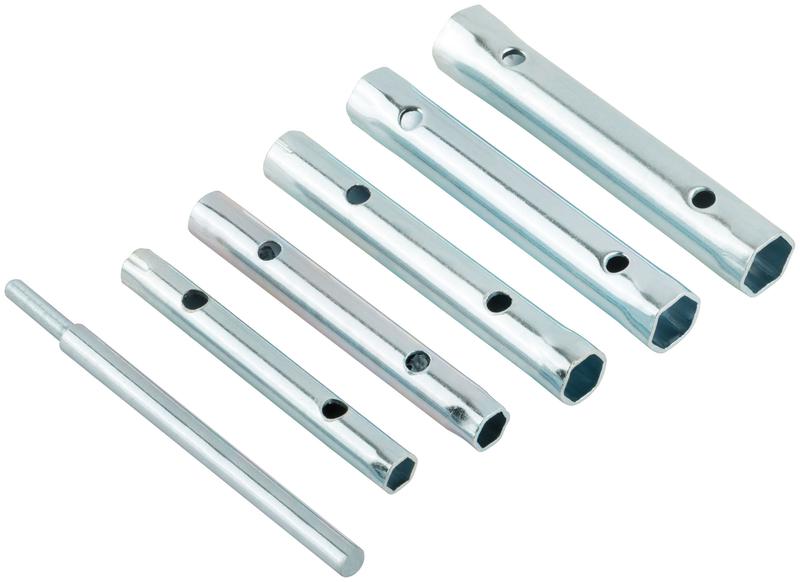 Набор трубчатых торцевых ключей с рычагом FIT IT предназначен для работ с крепежом в труднодоступных местах. Трубчатые торцевые ключи особенно удобны при извлечении и установке болтов и гаек в глубоких колодцах. Ключи изготовлены из качественной инструментальной стали, что обеспечивает износостойкость и долгий срок службы инструмента. 6 ключей разных размеров в наборе обеспечивают широкий спектр применения.
