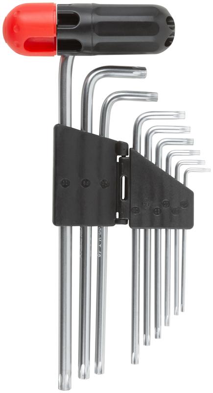 Набор ключей TORX FIT IT предназначен для работ с крепежом при ремонте автомобилей, велосипедов, бытовой и компьютерной техники. Ключи изготовлены из термообработанной хром-ванадиевой стали, что обеспечивает их высокую износостойкость. Увеличенная длина ключей позволяет передавать большее усилие во время работы. 9 размеров ключей в наборе способствуют выполнению широкого спектра задач. Хромированное покрытие ключей предотвращает коррозию. Эргономичный складной пластиковый держатель с подвесом позволяет организованно хранить ключи.