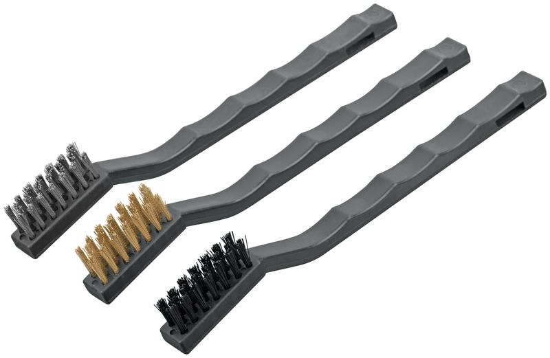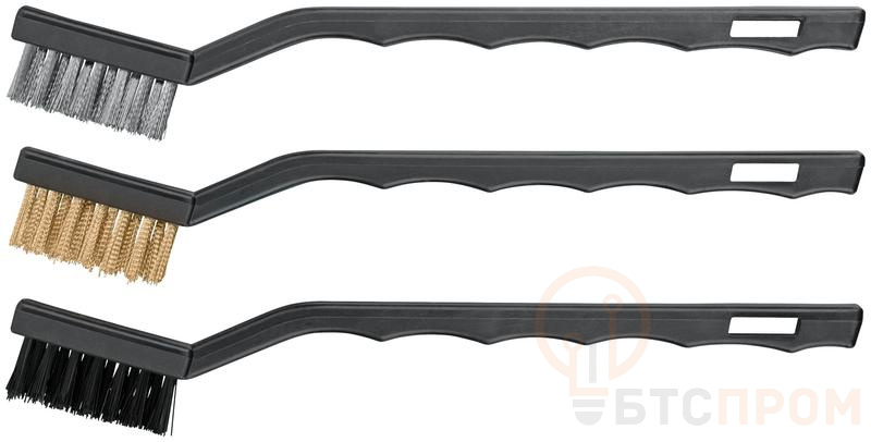 Набор ручных мини-корщеток FIT IT предназначен для зачистки мелких деталей, соединений и контактов из различных материалов, в том числе в труднодоступных местах. Набор включает в себя корщетки со стальной, нейлоновой и латунированной щетиной. Стальная проволока обладает высокой износостойкостью. Латунное покрытие щетины выполняет антикоррозионную защиту, повышает прочность металла. Нейлоновая щетина позволяет аккуратно и мягко обработать поверхности. Эргономичная форма рукояток обеспечивает надежный хват.