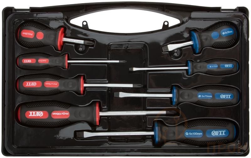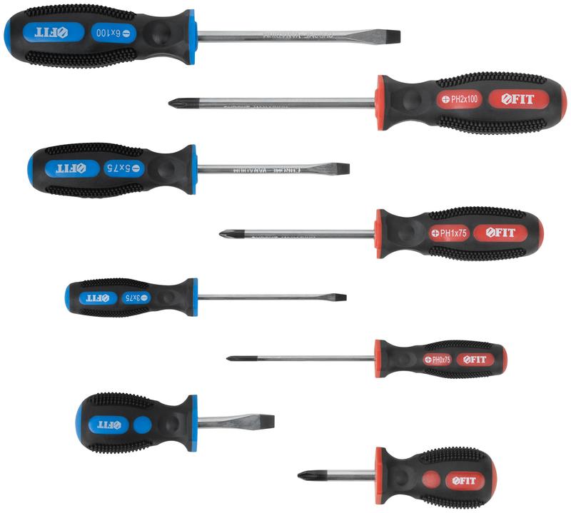 Набор отверток FIT IT предназначен для проведения слесарных работ с крепежными соединениями, имеющими шлицы PH и SL. Стержни изготовлены из высококачественной хром-ванадиевой стали, что делает инструмент более прочным и увеличивает его стойкость к коррозии. Магнитное жало значительно упрощает работу с крепежом в пазах и в других труднодоступных местах. Двухкомпонентные рукоятки имеют эргономичную форму и предотвращают проскальзывание в руке. Пластиковый кейс обеспечивает удобство хранения и транспортировки. В набор входят отвертки SL3 x 75 мм; SL5 x 75 мм; SL6 x 100 мм; SL6 x 38 мм; PH0 x 75 мм; PH1 x 75 мм; PH2 x 100 мм; PH2 x 38 мм.