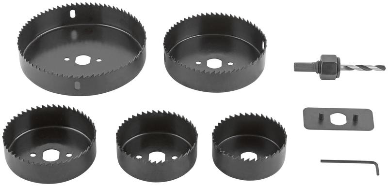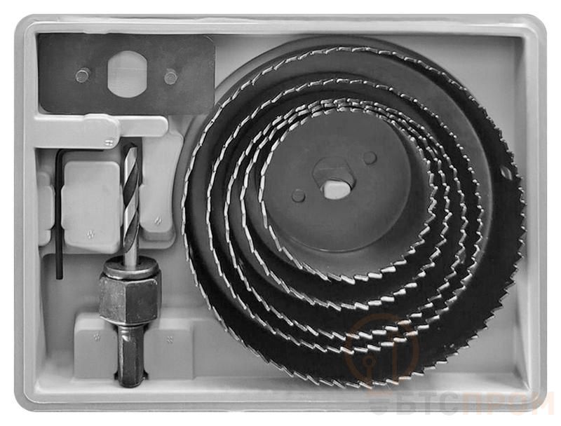 Набор пил круговых FIT IT ‘’Профи’’ с усиленным адаптером предназначены для высверливания отверстий в древесине твердых и мягких пород, ДСП и фанере. Пилы изготовлены из термообработанной усиленной инструментальной стали, что обеспечивает их долговечность и надежность в использовании. Центрирующее сверло обеспечивает точное засверливание. В наборе 5 круговых пил: 68, 72, 82, 102 и 127 мм. Пластиковый кейс обеспечивает удобство хранения и транспортировки.