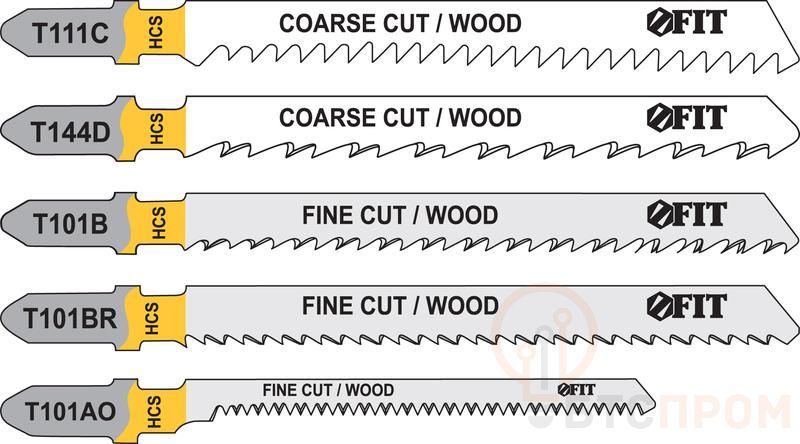 Набор полотен FIT IT (T111C, T144D, T101B, T101BR, T101AO) предназначен для выполнения различных видов работ по дереву. В наборе представлены полотна с различными типами зубьев и шагом, что позволяет подобрать оптимальный вариант для конкретной задачи, будь то грубый распил досок или тонкий рез фанеры. Все полотна изготовлены из высококачественной стали и имеют закалку высокой твердости, что обеспечивает высокую износостойкость и долгий срок службы. Универсальный Т-образный хвостовик европейского типа гарантирует совместимость полотен с большинством моделей электролобзиков, представленных на рынке.