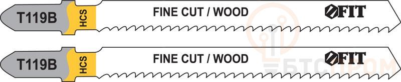 Полотна для электролобзика по дереву FIT HQ предназначены для резки мягкой древесины, столярных плит, ДВП, ДСП, фанеры. Прямой тонкий пропил. Зубья профрезированные, ‘’волна’’. Закалка полотна до твердости 50–52 HRC обеспечивает высокую износостойкость. Шаг зубьев 2 мм (12 TPI) обеспечивает чистый рез без сколов. Волнообразная разводка зубьев предотвращает заклинивание полотна во время работы. Универсальный T-образный хвостовик европейского типа совместим с большинством моделей электролобзиков.