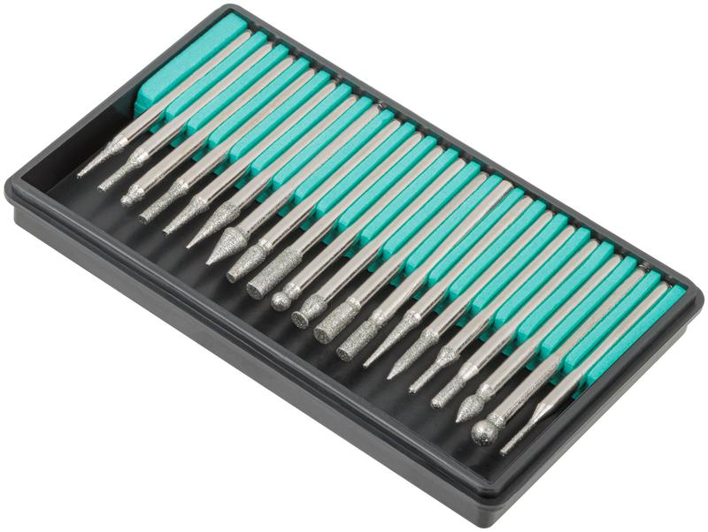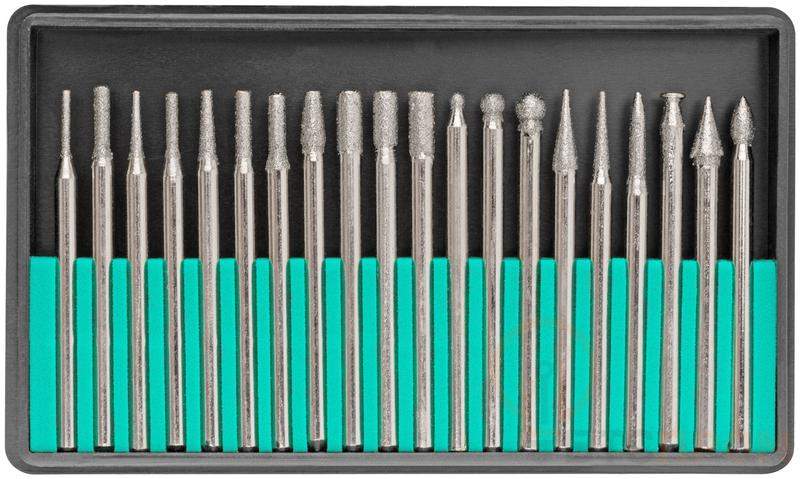 Шарошки алмазные FIT IT предназначены для обработки мрамора, керамики, кафельной плитки, дерева, металла и других материалов. Используются для работы с гравировальной машиной. Шарошки изготовлены из качественной инструментальной стали, что обеспечивает их долговечность и надежность в использовании. Режущая кромка содержит порошок из технических алмазов. 20 типоразмеров в комплекте обеспечивают широкий спектр применения.