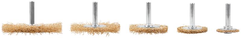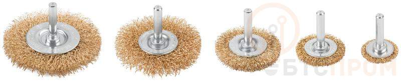 Набор щеток для дрели со шпильками, тип «Плоские», размеры 25, 38, 50, 65 и 75 мм, латунированная витая проволока 0,3 мм, Cutop profi. Предназначена для щадящей очистки различных металлических и деревянных поверхностей, снятия ржавчины, удаления лакокрасочных покрытий и других загрязнений. Тип «Плоская» оптимально подходит для обработки углов, пазов, изгибов и других труднодоступных участков. Упаковка: Блистер.