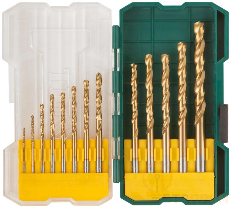 Набор сверл HSS по металлу 1.5; 2; 2.5; 3; 3.2; 3.5; 4; 4.5; 5; 5.5; 6; 6.5; 8мм покрытие титан. (13 предметов) FIT 34216
