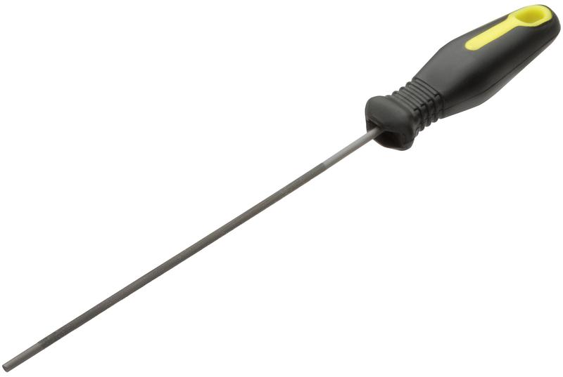 Круглый напильник FIT IT предназначен для заточки цепей бензопил. При ручной заточке нет необходимости снимать цепь с инструмента. Напильник выполнен из высокоуглеродистой инструментальной стали, что обеспечивает его прочность и долговечность. Пластиковая прорезиненная рукоятка не скользит в руке во время работы и обеспечивает надежный хват.