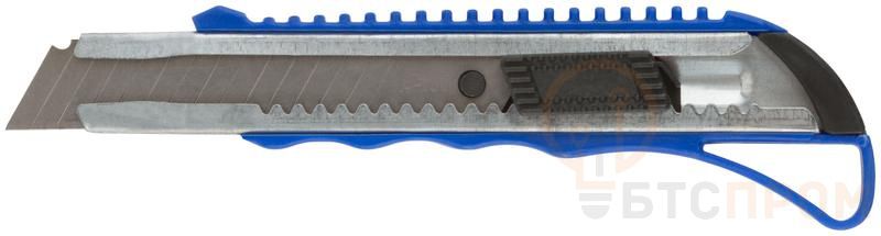 Применяется для резки бумаги, обоев,скотча, картона средней твердости.Рифленая форма ножа обеспечивает крепкий захват и предотвращает выскальзывание при использовании. Компактный корпус изготовлен из пластика, сегментированное лезвие из высокоуглеродистой инструментальной стали состоит из 15 сегментов,гарантирует устойчивость во время работы.Нож имеет металлические направляющие и автофиксатор лезвия.