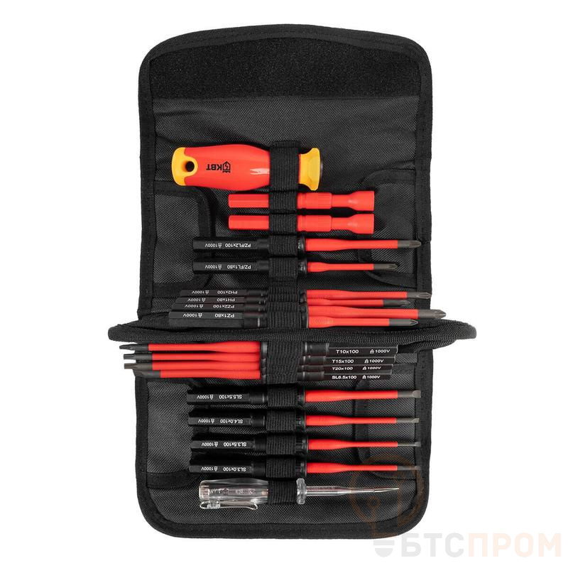 Комплектация включает 6 сменных бит (SL 4.0, 5.5, 7.0, PH №1, №2, PZ №1), хранящихся в полой рукоятке, что обеспечивает мобильность и всегда под рукой нужную насадку. Ударопрочный изоляционный стержень из фибергласса обладает высокой механической прочностью и соответствует ГОСТ и международным стандартам безопасности.