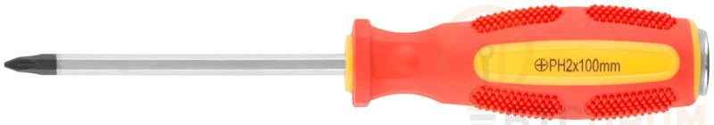 Отвертка ударная CrV сталь шестигранное сквозное жало с бойком прорезиненная ручка 6х100мм PH2 КУРС 55603
