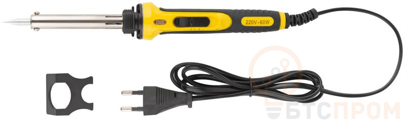 Паяльник 220В 2 режима работы подставка выключатель прорезиненная ручка конусное жало 30Вт/60Вт FIT 60495