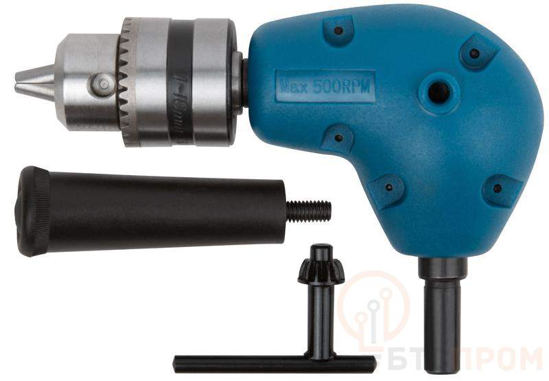 Переходник угловой для дрели FIT IT предназначен для проведения работ в труднодоступных местах. Переходник позволяет выполнять работы под углом, что значительно расширяет возможности применения дрели. Переходник оснащен патроном, который обеспечивает надежную фиксацию сверл и насадок, а его цельнометаллическая конструкция гарантирует долговечность и устойчивость к износу. Использование углового переходника особенно актуально при монтаже, сборке мебели и других работах, где требуется сверление в ограниченном пространстве. Передаточное число 1:1.