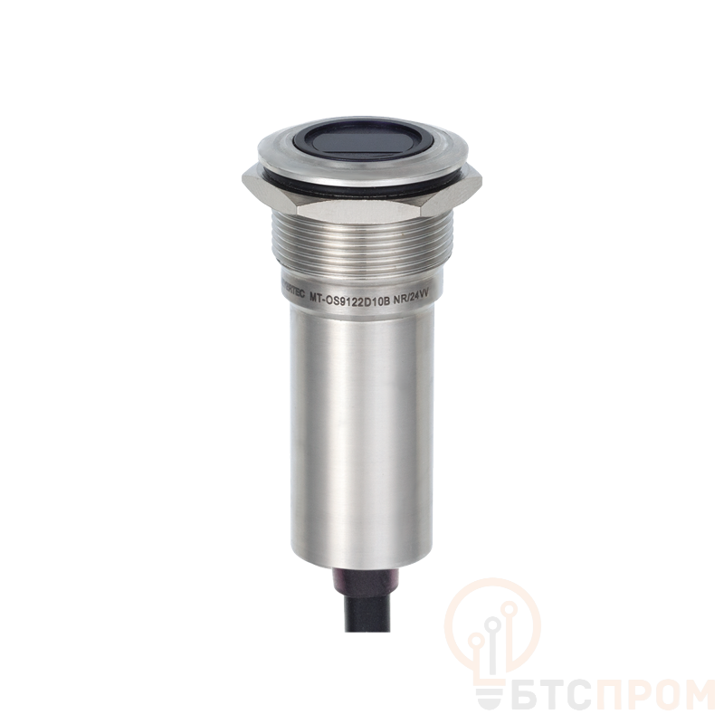 Переключатель оптический MT-OS9122D10BNR от ОВЕН — надежный датчик для промышленной автоматизации. Корпус диаметром 22 мм обеспечивает защиту от пыли и влаги по стандарту IP65, что позволяет использовать его в сложных условиях цехов. Устройство работает по принципу NPN-транзистора (открытый коллектор) с нормально разомкнутым (NO) контактом и питается от постоянного напряжения 24 В DC.