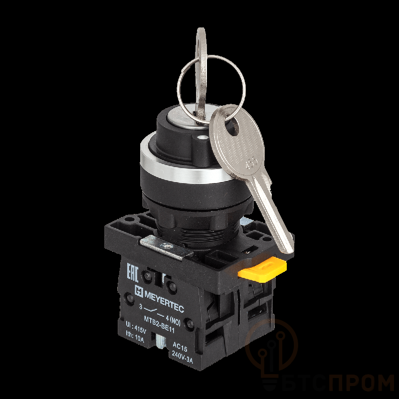 Переключатель MTB2-EGZ133 от компании ОВЕН — это надежный трехпозиционный переключатель с ключом и фиксацией положений. Конструкция имеет одно выемочное (центральное) положение и два крайних, что обеспечивает четкое и безопасное переключение режимов оборудования. Корпус устройства изготовлен из прочного пластика и имеет степень защиты IP54, гарантирующую устойчивость к попаданию пыли и брызг воды.