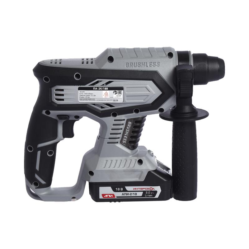 Перфоратор аккумуляторный бесщеточный ПА-24/18В АПИ 18В SDS plus макс. диаметр бурения 24мм 0-1400 уд/мин 2.2Дж 2 АКБ 2.0А.ч ЗУ ИНТЕРСКОЛ 579.2.2.70