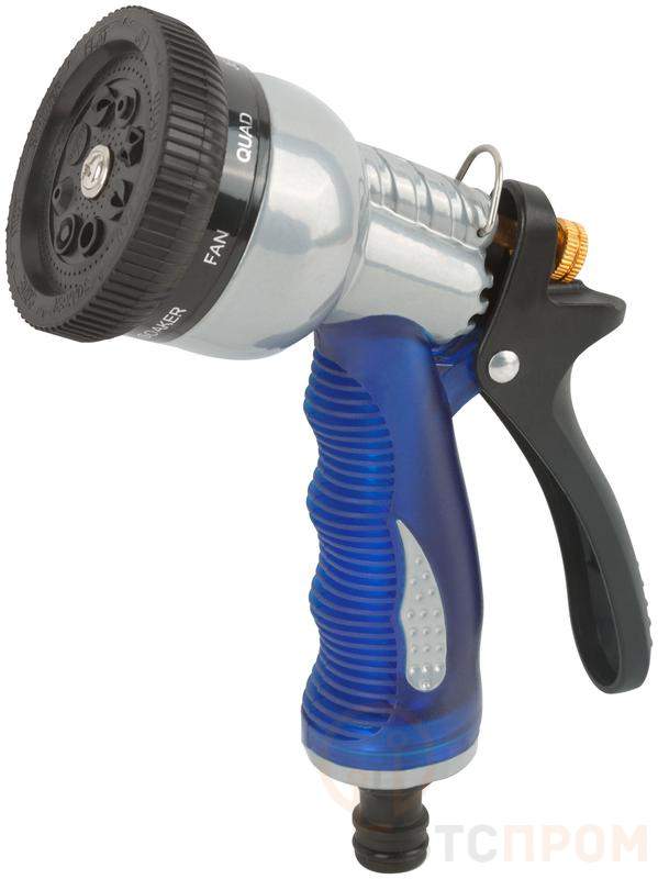 Профи. 6 режимов распыления. Применяется для полива растений и орошения почвы. Присо-единяется к шлангу при помощи универсального соединителя. Совместим со всеми элементами ана-логичной поливочной системы. Материал: корпус из оцинкового сплава, мягкая прорезиненная ручка. Упаковка: блистер.