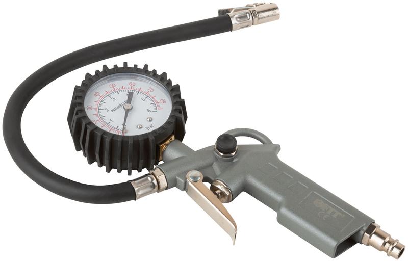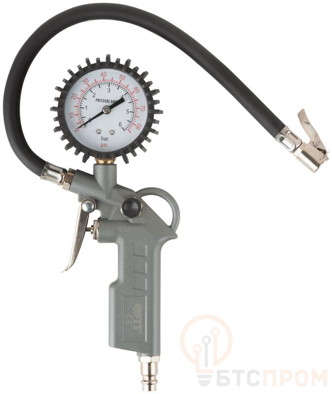 Пистолет с манометром FIT DIY предназначен для контроля давления при подаче воздуха, используется при накачке шин. Корпус пистолета выполнен из алюминия, отличается легкостью и прочностью. Быстросъемное соединения и расположение клавиши пуска на рукоятке обеспечивают удобство эксплуатации инструмента.