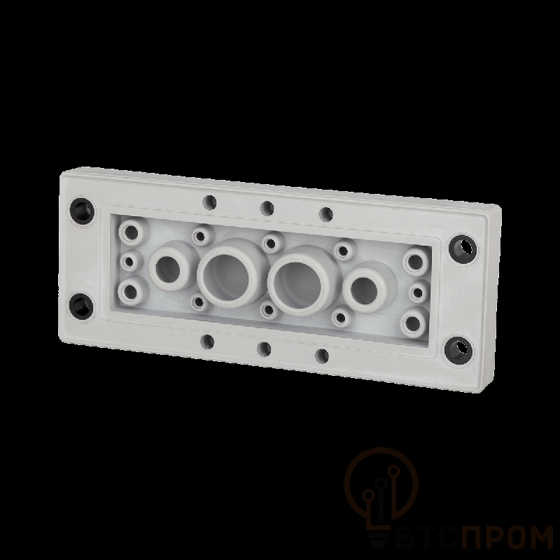 Изделие выполнено из высококачественного пластика и оснащено набором заглушек разного диаметра: 8 отверстий для кабелей 3.2-6.5 мм, 4 отверстия для 5-9.7 мм, 2 отверстия для 9-16.2 мм и 2 отверстия для 16-22 мм. Такая конструкция обеспечивает гибкость при монтаже, надежную защиту от пыли и механических повреждений, а также повышает электробезопасность.