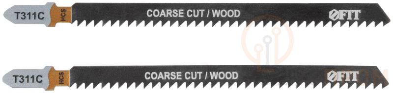 T311C. Разведенные, фрезерованные зубья. Прямой грубый пропил. Для резки мягкой и твердой древесины, столярных плит, ДВП, ДСП, фанеры. Толщина реза: 20-70 мм. Материал: высокоуглеродистая инструментальная сталь. Упаковка: блистер.