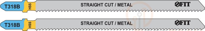 Комплект из двух полотен FIT IT (T318B) предназначен для прямого реза по металлу. Закалка полотен до твердости 60–65 HRC обеспечивает высокую износостойкость. Шаг зубьев 2,0 мм способствует высокой скорости и чистоте реза металлов. Волнообразная разводка зубьев повышает скорость пропила и минимизирует вероятность заклинивания полотна во время работы. Длинное полотно дает возможность быстро и эффективно резать пустотелые изделия. Т-образный хвостовик европейского типа совместим с большинством электрических лобзиков.