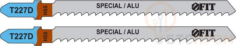Комплект из двух полотен FIT IT (T227D) предназначен для криволинейного реза листового металла, труб, профилей, эпоксидных и полимерных материалов. Полотна изготовлены из быстрорежущей стали HSS, что гарантирует высокую износостойкость и долгий срок службы. Шаг зубьев обеспечивает высокую скорость пропила. Фрезерованные зубья с разводкой способствуют точному резу и предотвращают заклинивание полотна в материале. Специальная узкая форма полотна дает возможность осуществлять как прямой, так и криволинейный рез. Универсальный Т-образный хвостовик европейского типа совместим с большинством моделей электролобзиков.
