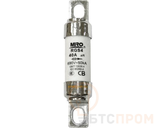 Предохранитель MIRO RGS4 — это надежный и эффективный элемент защиты электрооборудования. Данная модель рассчитана на номинальное напряжение 690 В и номинальный ток 40 А. Конструкция предохранителя обеспечивает высокую отключающую способность и предназначена для безопасного и быстрого размыкания цепи в случае перегрузки или короткого замыкания.