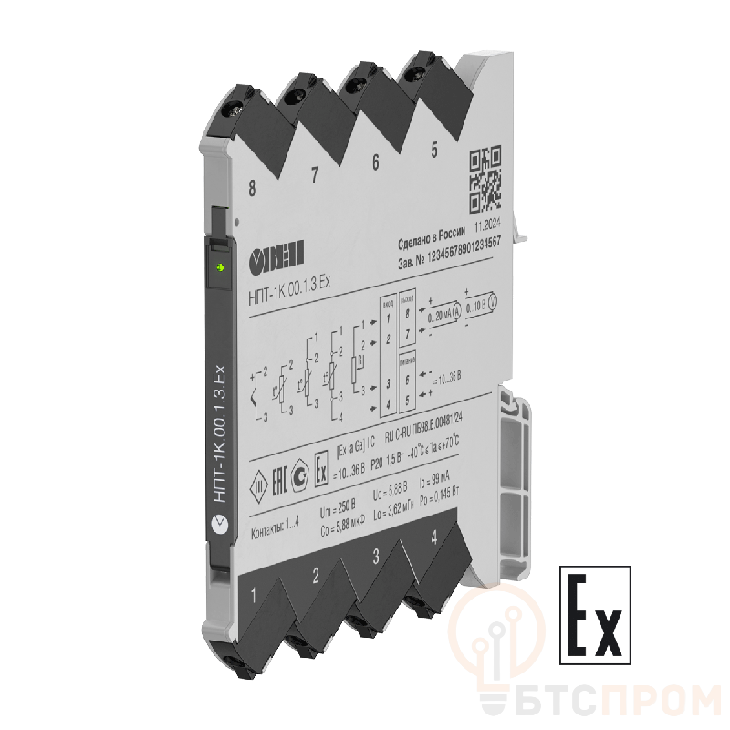 Преобразователь аналоговых сигналов измерительный НПТ-1К.00.1.3.Ех ОВЕН 77426 предназначен для преобразования и гальванической развязки унифицированных аналоговых сигналов постоянного тока (ток и напряжение) в стандартный сигнал. Ключевой особенностью прибора является взрывозащищенное исполнение марки «Ех», что позволяет безопасно эксплуатировать его во взрывоопасных зонах.