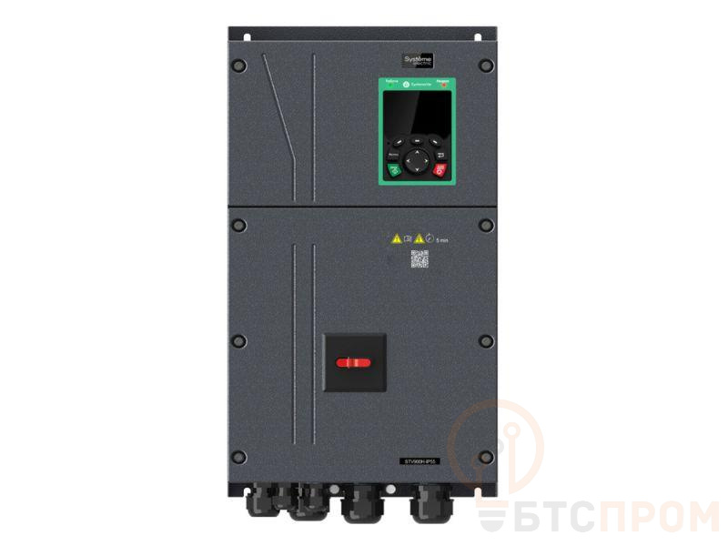 Преобразователь частоты SystemeVar 900H (STV900H). Номинальная мощность: 22 кВт (G-тип: перегрузочная способность: 150% в течение 60с, 180% в течение 10с, 200% в течение 1с. Несущая частота ШИМ: 4 кГц). Номинальный ток: 45 А (G-тип). Питающее напряжение 3Ф 380В (-15%) ~ 440В (+10%). Степень защиты IP55. Встроенный DC-реактор. Встроенный тормозной прерыватель. Встроенный-ЭМС фильтр (Класс С3, согл. EN 61800-3). Коммуникационный протокол: Modbus RTU. Кол-во входов/выходов: 6DI, 2AI, 2DO, 2RO, 1AO. Степень защиты: IP55. Покрытие плат (Класс 3С2, согл. EN 60721-3-3). Температура окружающей среды: от -10°C до +50°C (до +40°C без ухудшения номинальных характеристик). Скалярное управление, векторное управление (без/c обратной связи по скорости). Функции для крановых применений (в том числе функции управления стояночным тормозом двигателя). Работа как с асинхронными, так и с синхронными двигателями. 3 слота для расширения функциональности (возможность использования дополнительных коммуникационных карт, карт расширения входов/выходов, карт энкодеров, карты ПЛК, карты внешнего питания цепей управления 24V DC). Встроенная функция безопасности STO (Safe torque off), SIL2. Встроенный рубильник (для отключения сетевого питания). Габаритные размеры (ДхШхВ), мм: 274х279,5х522. Вес: 21 кг.