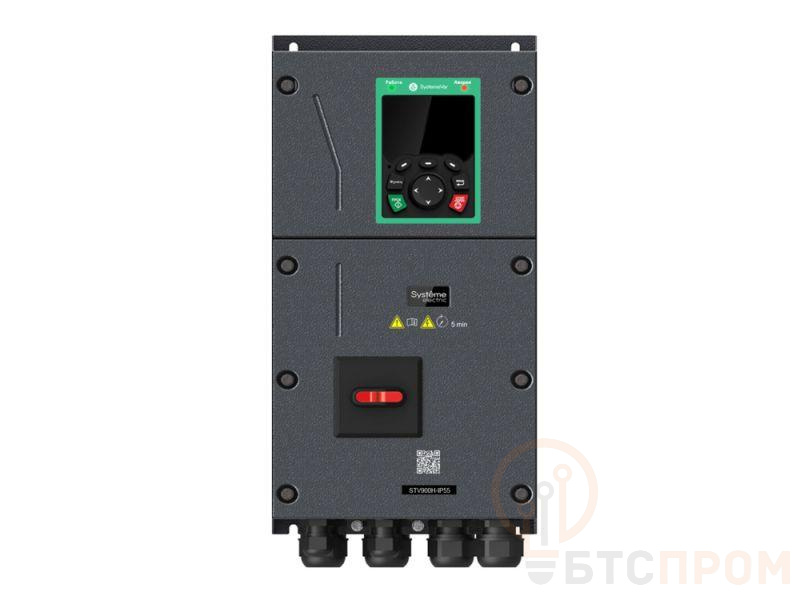 Преобразователь частоты SystemeVar 900H (STV900H). Номинальная мощность: 4,0 кВт (G-тип: перегрузочная способность: 150% в течение 60с, 180% в течение 10с, 200% в течение 1с. Несущая частота ШИМ: 8 кГц). Номинальный ток: 9,5 А (G-тип). Питающее напряжение 3Ф 380В (-15%) ~ 440В (+10%). Степень защиты IP55. Встроенный тормозной прерыватель. Встроенный-ЭМС фильтр (Класс С3, согл. EN 61800-3). Коммуникационный протокол: Modbus RTU. Кол-во входов/выходов: 4DI, 1AI, 1DO, 1RO, 1AO. Степень защиты: IP55. Покрытие плат (Класс 3С2, согл. EN 60721-3-3). Температура окружающей среды: от -10°C до +50°C (до +40°C без ухудшения номинальных характеристик). Скалярное управление, векторное управление (без/c обратной связи по скорости). Функции для крановых применений (в том числе функции управления стояночным тормозом двигателя). Работа как с асинхронными, так и с синхронными двигателями. 3 слота для расширения функциональности (возможность использования дополнительных коммуникационных карт, карт расширения входов/выходов, карт энкодеров, карты ПЛК, карты внешнего питания цепей управления 24V DC). Встроенная функция безопасности STO (Safe torque off), SIL2. Встроенный рубильник (для отключения сетевого питания). Габаритные размеры (ДхШхВ), мм: 196х260,5х403. Вес: 7 кг.