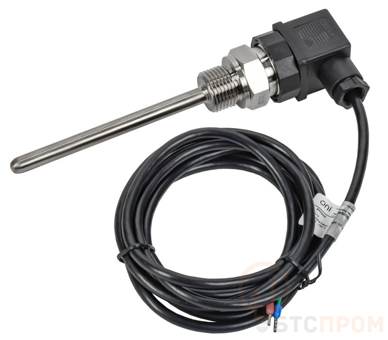 Датчик температуры с сенсором PT100 для измерения температуры в емкостях и трубопроводах устанавливающийся посредством резьбы G1/2, за счет компактного электросоединения стандарта DIN установка имеет минимальные размеры, а погружная часть длиной 100мм позволяет устанавливать их нам трубах более 150мм