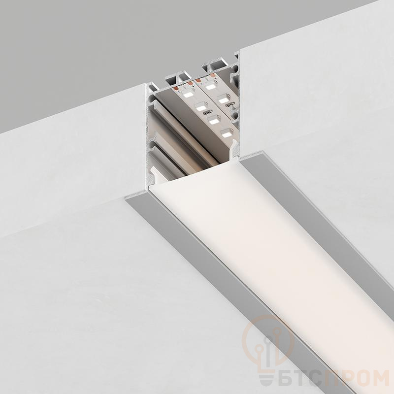 Профиль встраиваемый для светодиодной ленты FERON CAB255 «встраиваемый», цвет серебро, в комплекте 2 заглушки + экран + 4 крепежа, 2000*51*35мм