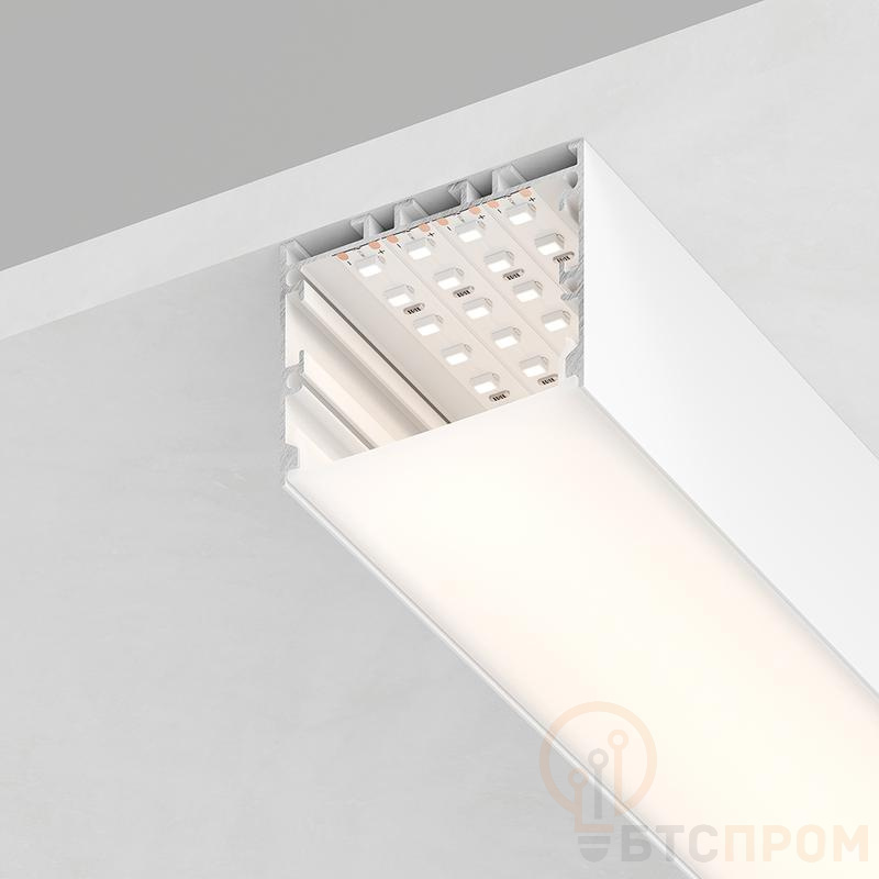 Профиль накладной для светодиодной ленты FERON CAB257 «накладной», цвет белый, в комплекте 2 заглушки + экран + 4 крепежа, 2000*50*35мм