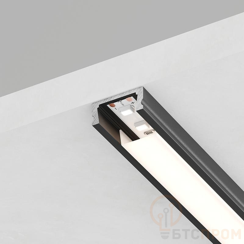 Профиль накладной для светодиодной ленты FERON CAB262 «накладной», цвет черный, в комплекте 2 заглушки + экран + 4 крепежа, 2000*16*6мм