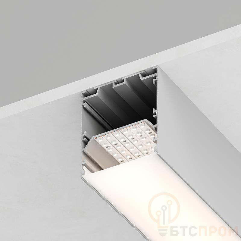 Профиль накладной для светодиодной ленты FERON CAB265 «накладной», цвет серебро, в комплекте 2 заглушки + экран + 4 крепежа, 2000*75*75мм