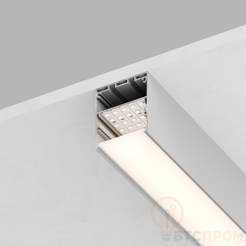 Профиль накладной для светодиодной ленты FERON CAB269 «накладной», цвет серебро, в комплекте 2 заглушки + экран + 4 крепежа, 2000*50*50мм