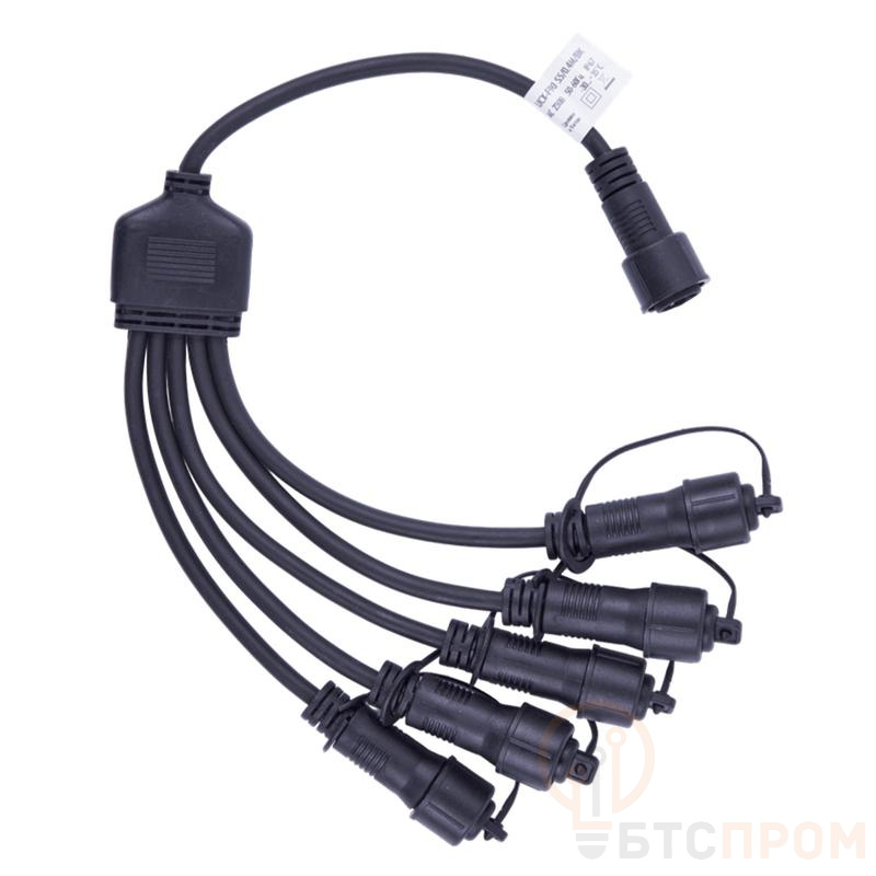 Провод-разветвитель для гирлянд UCX-F90 S5/0.4M/BK серии F90PRO 0.4м 5 выходов статика/мерцание IP67 черн. Uniel UL-00013237