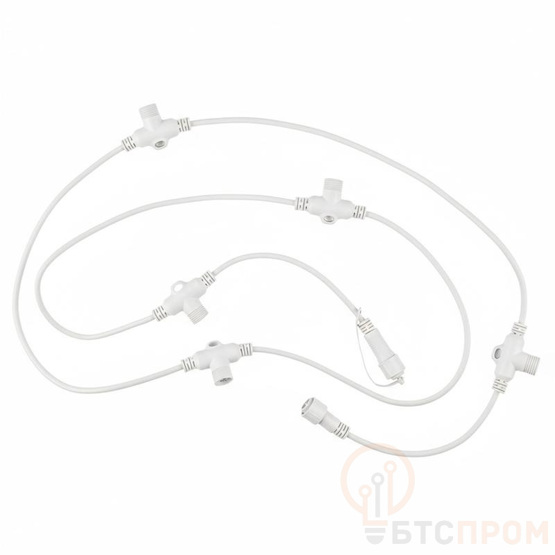 Провод-шина для гирлянд UCX-F90 T05/2M/WH серии F90PRO 2м 5 Т-коннекторов шаг 50см статика/мерцание IP67 бел. Uniel UL-00013220