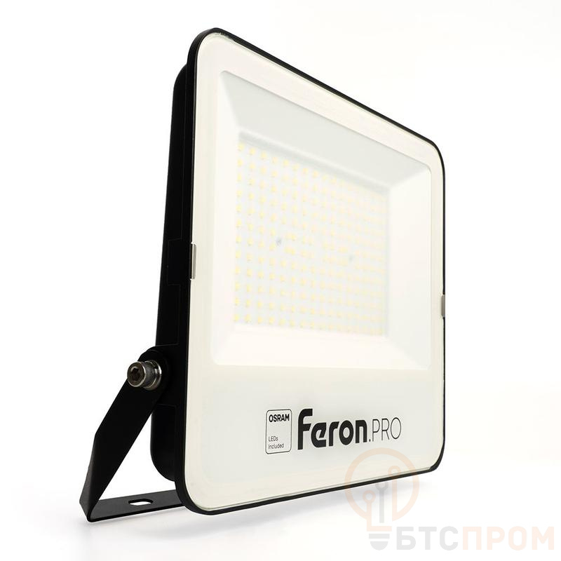 Прожектор светодиодный многоматричный с монтажным креплением на кронштейн, (ДО) FERON LL-1000, 150W, 6400К (холодный белый), 175-265V/50Гц, 18000Lm, IP65, угол рассеивания 120°, 192*OSRAM, раб.t -40°C - +70°C, цвет чёрный, корпус алюминий литой под давлением + стекло, 256*229*42 мм