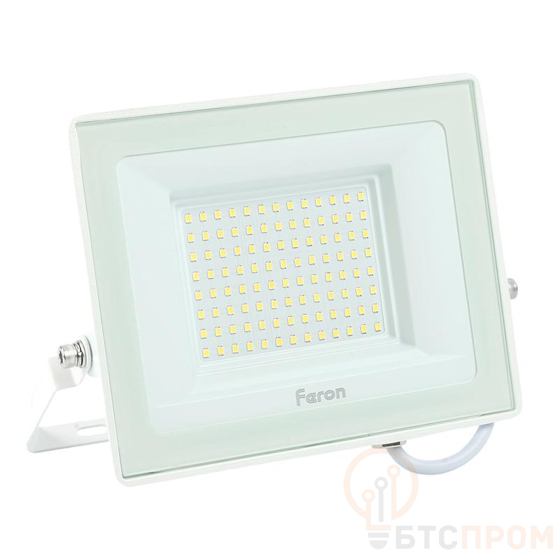 Прожектор светодиодный многоматричный с монтажным креплением на кронштейн, (ДО) FERON LL-922, 100W, 6400К (холодный белый), 230V/50Гц, 10000Lm, IP65, угол рассеивания 120°, 104*SMD2835, раб.t -40°C - +40°C, цвет белый, корпус алюминий литой под давлением + стекло, 216*171*32 мм