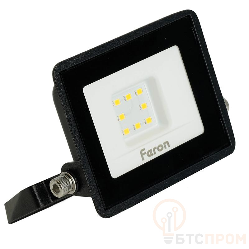 Прожектор светодиодный многоматричный с монтажным креплением на кронштейн, (ДО) FERON LL-918, 10W, 4000К (белый), 230V/50Гц, 1000Lm, IP65, угол рассеивания 120°, 8*SMD2835, раб.t -40°C - +40°C, цвет чёрный, корпус алюминий литой под давлением + стекло, 105*88*21 мм