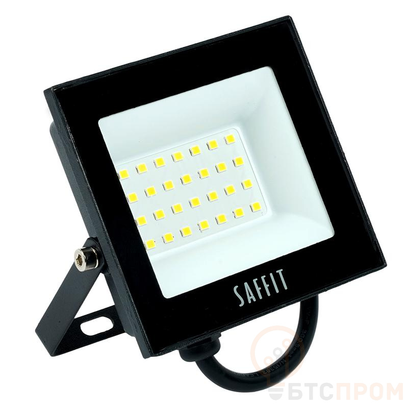 Прожектор светодиодный многоматричный с монтажным креплением на кронштейн, (ДО) SAFFIT SFL90-30, 30W, 4000К (белый), 230V/50Гц, 2700Lm, IP65, угол рассеивания 120°, 24*SMD2835, раб.t -40°C - +40°C, цвет чёрный, корпус алюминий литой под давлением + стекло, 94,5*84,5*26 мм